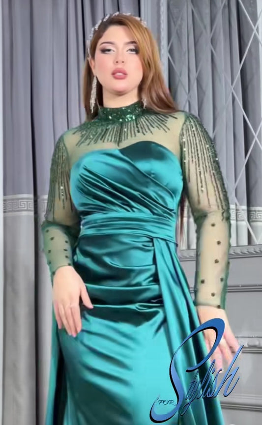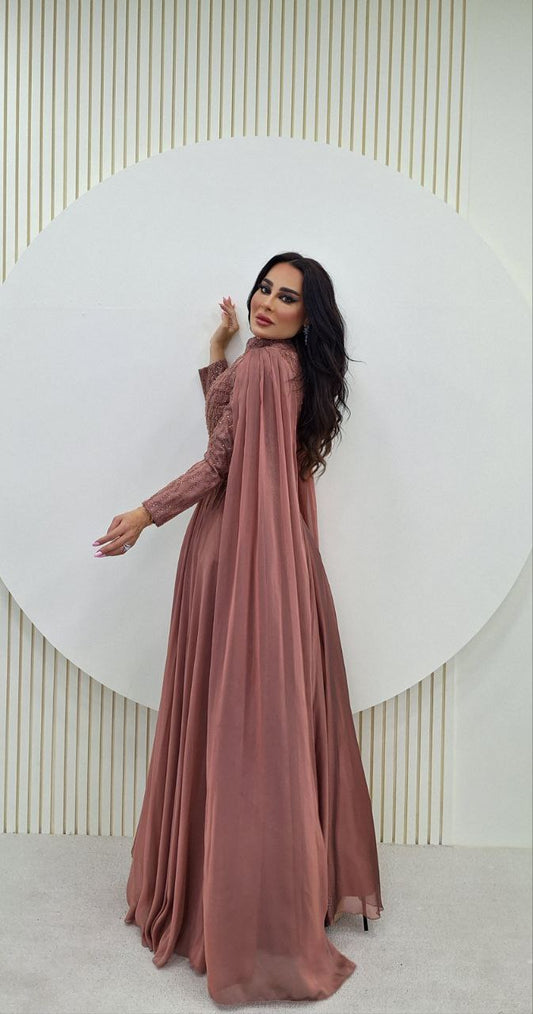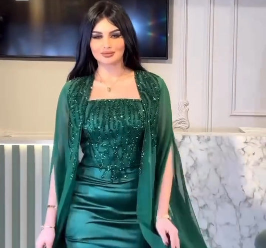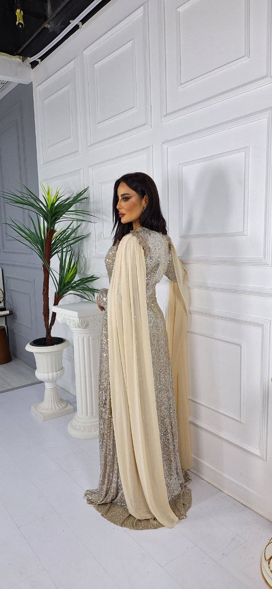 فستان سهرة كلوش مع كاب كريستال