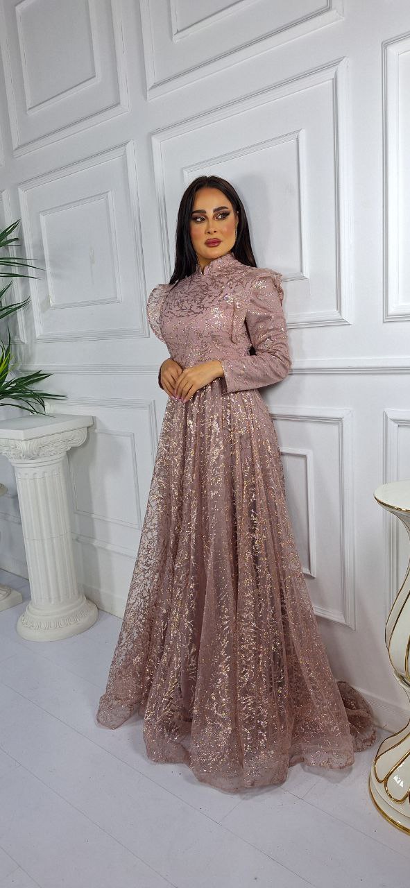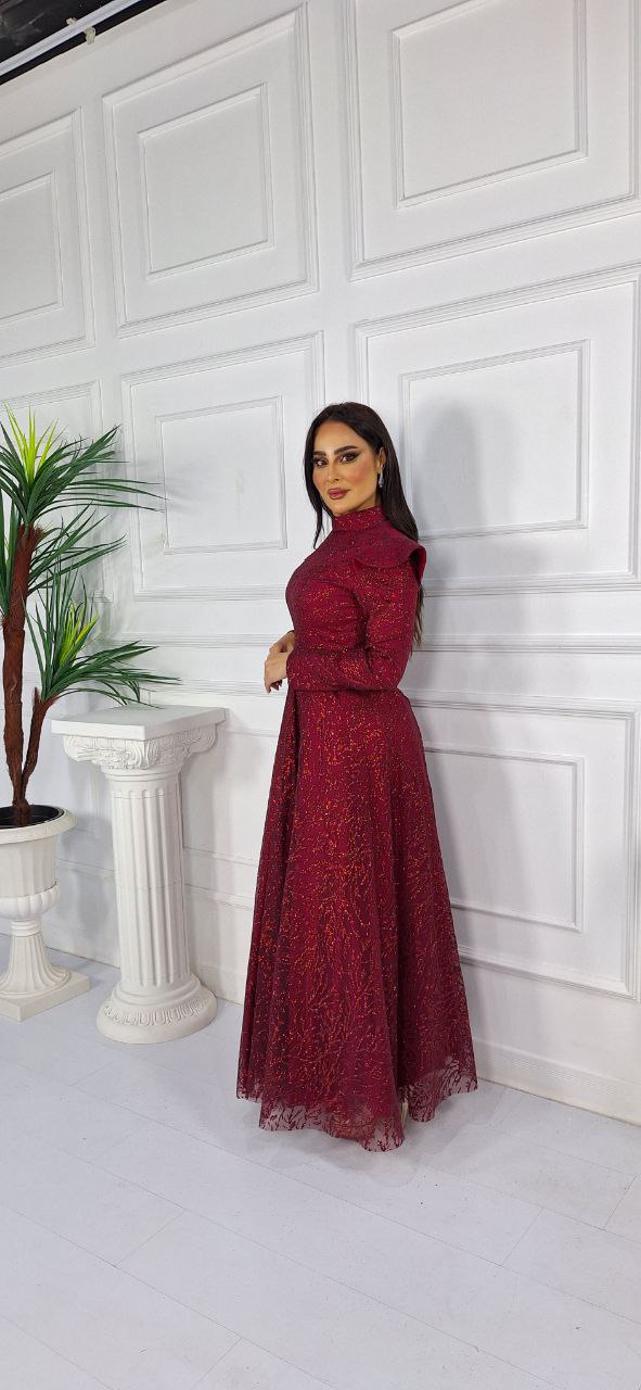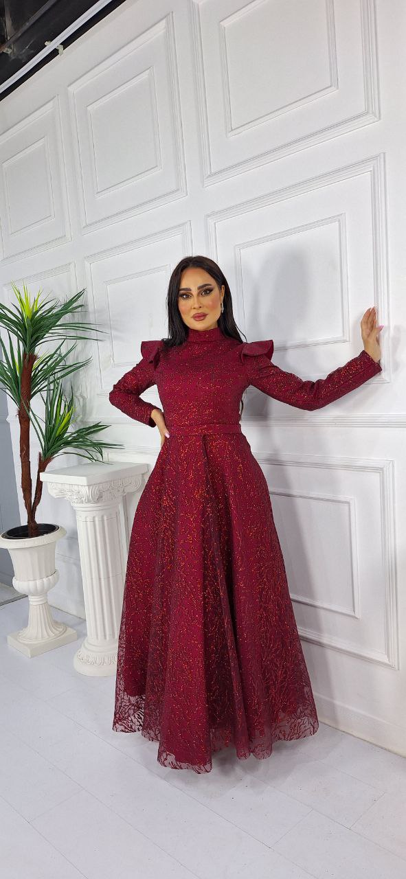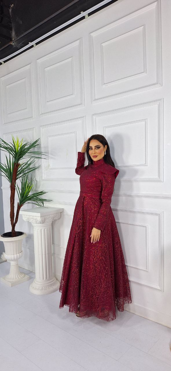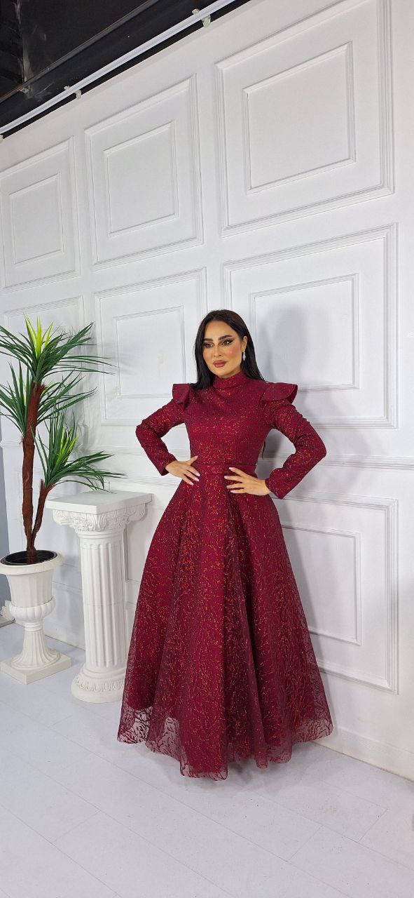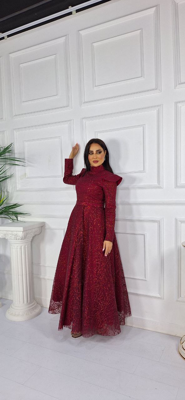 فستان تول كلوش بأكمام طويلة