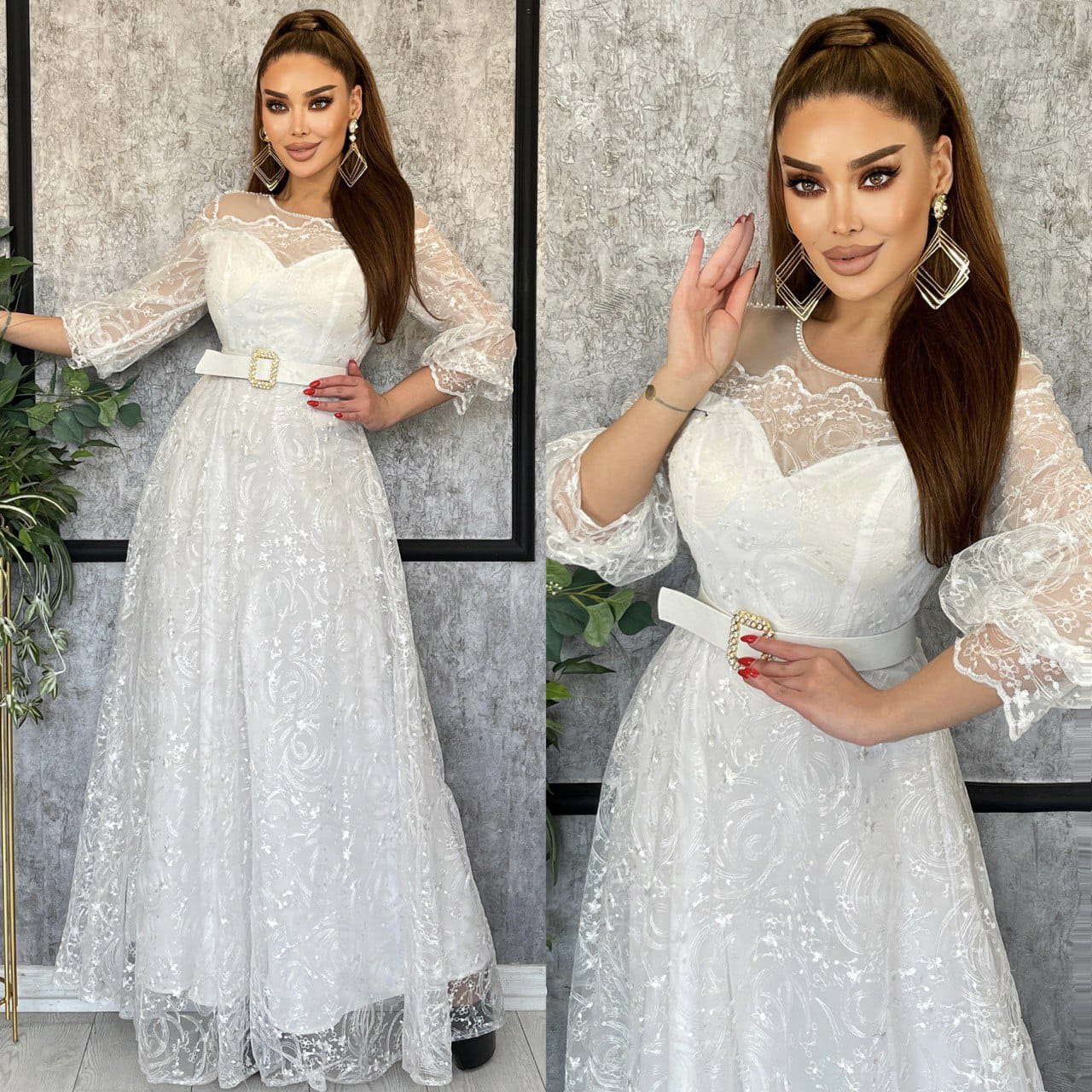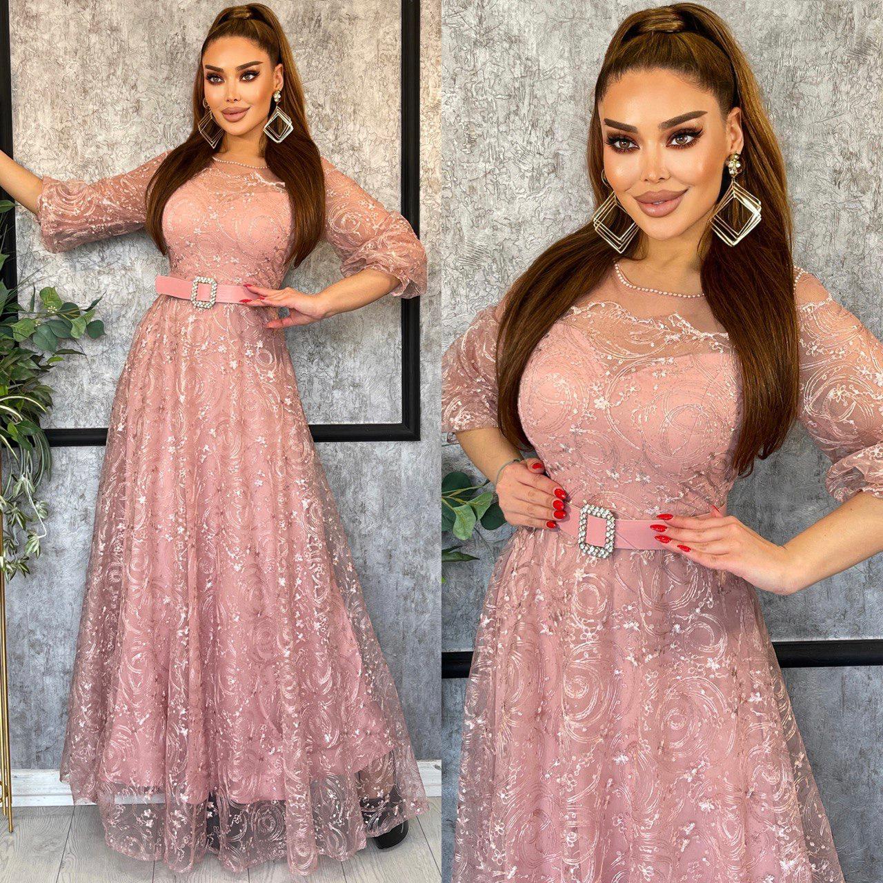 فستان تول مطرز مع حزام