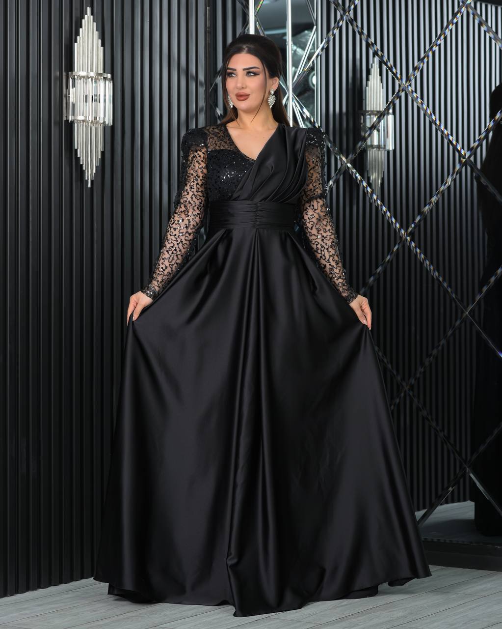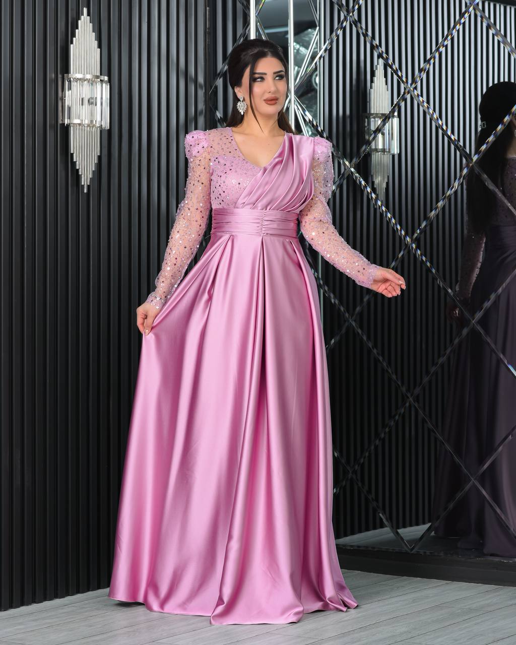 فستان سهرة طويل راقي ستان فاي لماع بتفاصيل جميلة جدا