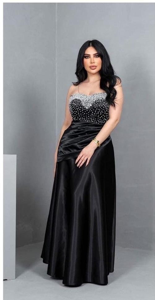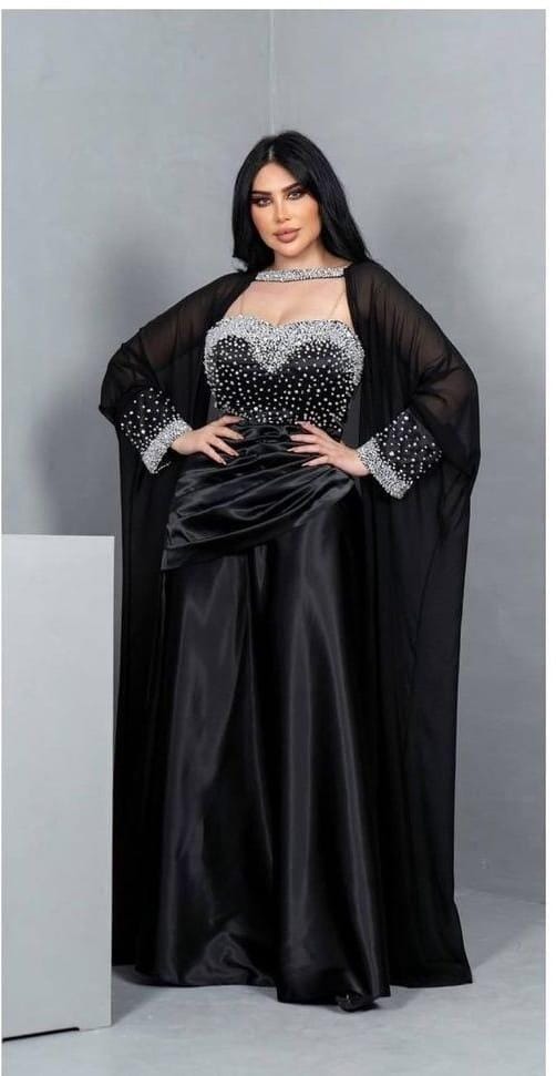 فستان سهرة يتكون من قطعتين خارجية من الشيفون مشكوك كريستال وداخلية من الساتان بشك يدوي كريستال