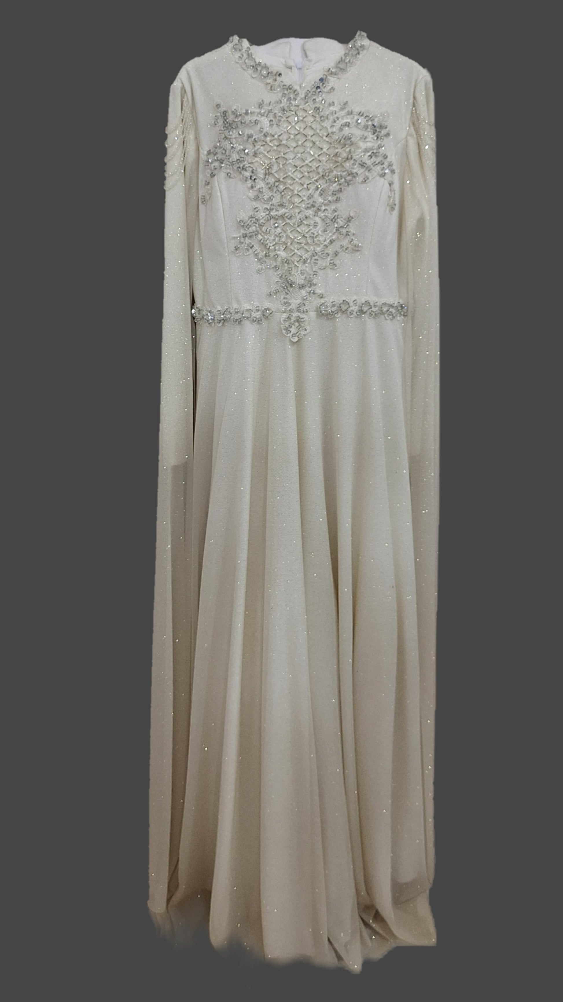 فستان سهرة ابيض شيفون مرصع بحجر كريستال