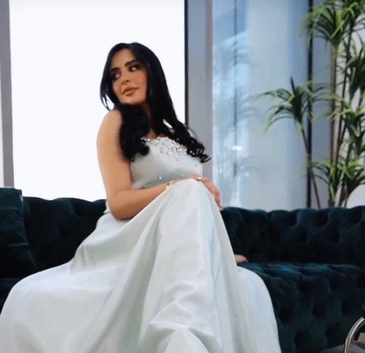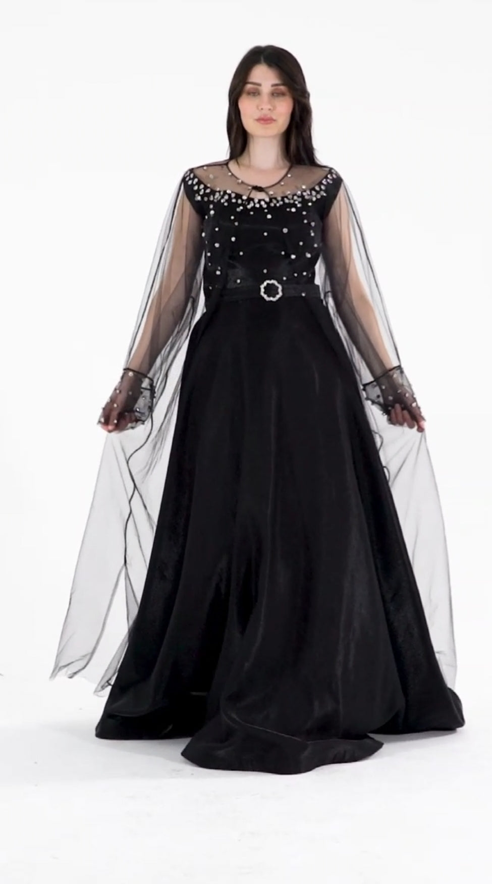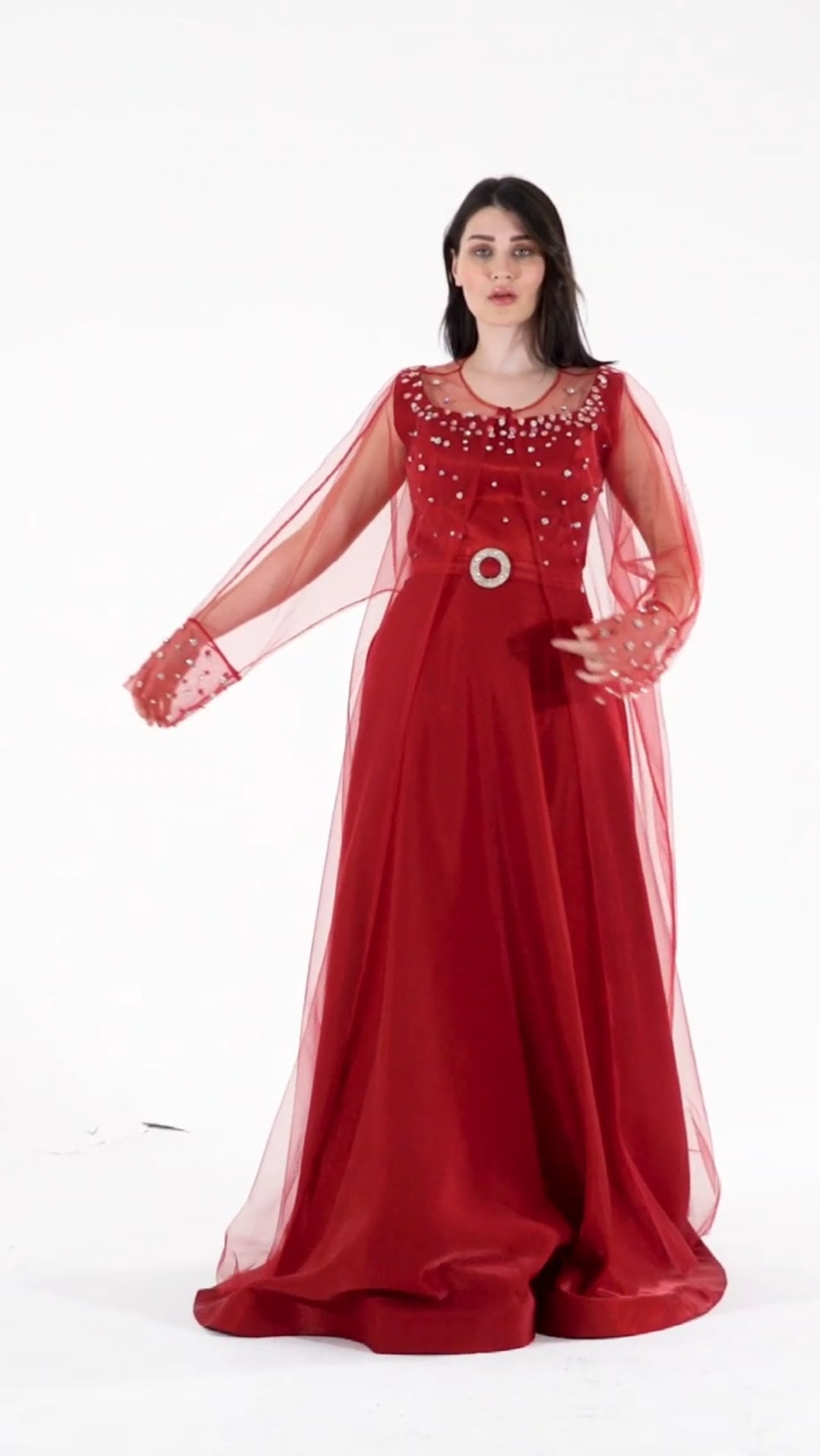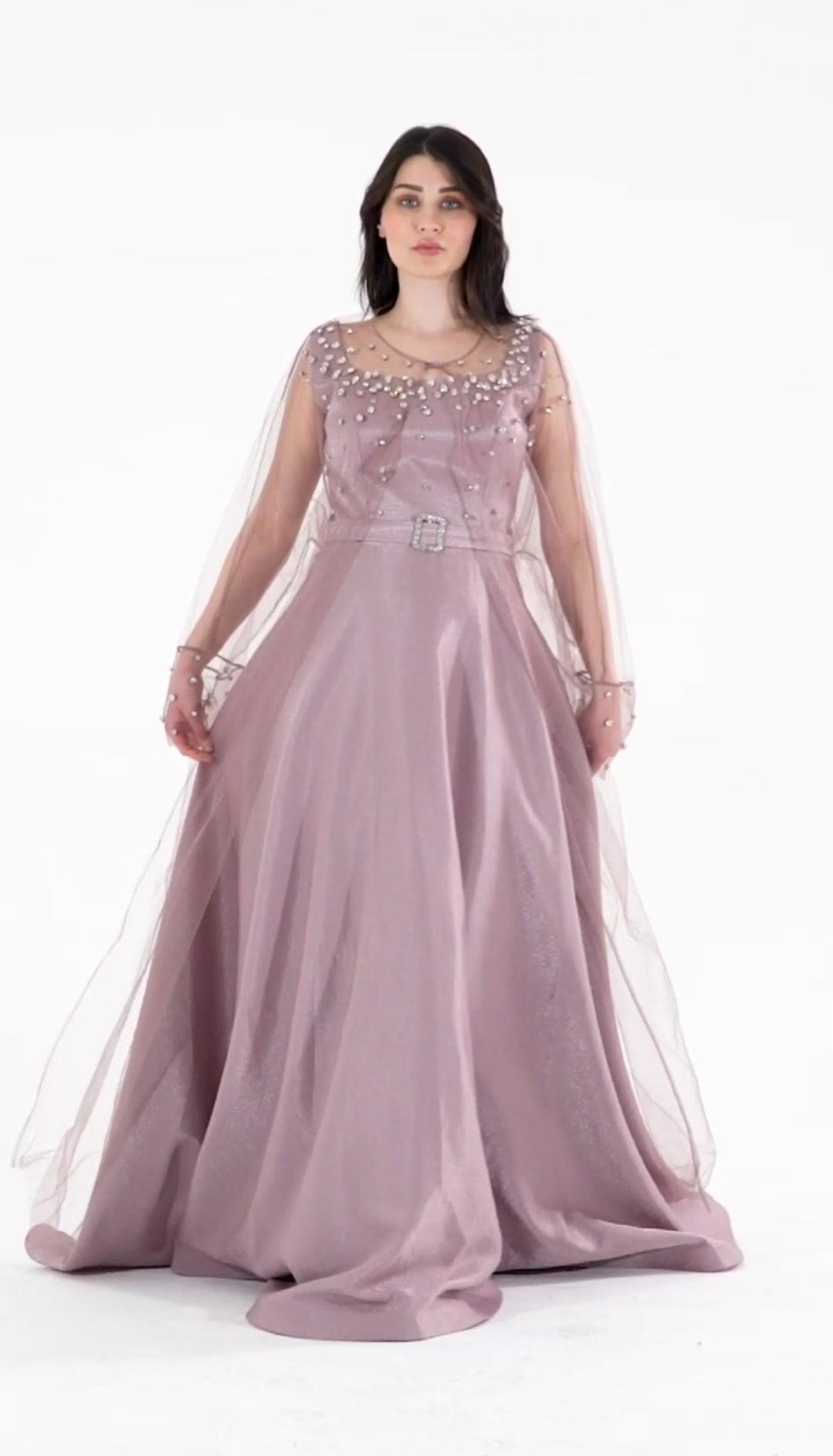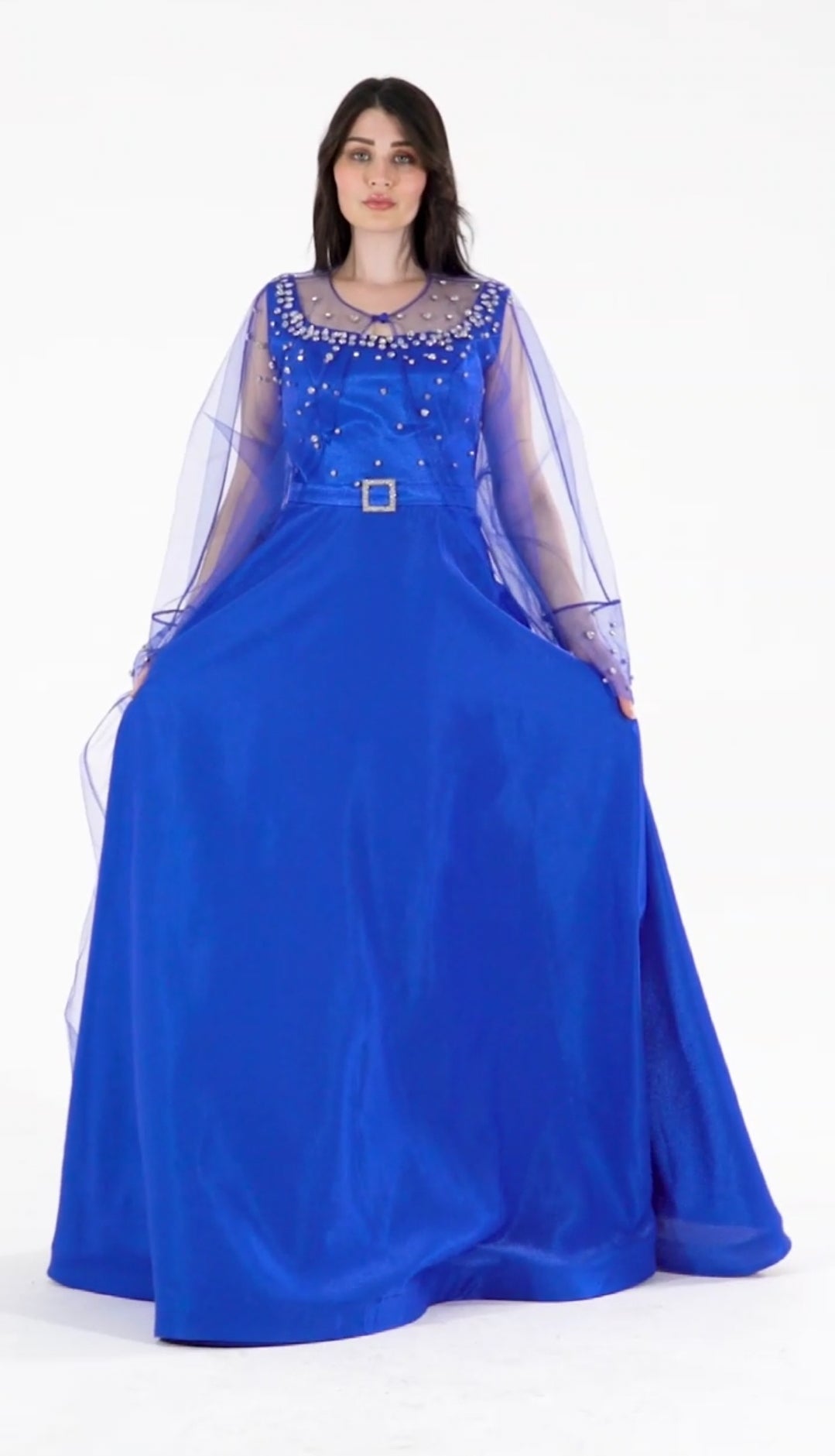 فستان سهرة قماش ستان كريب و كارديجان تول