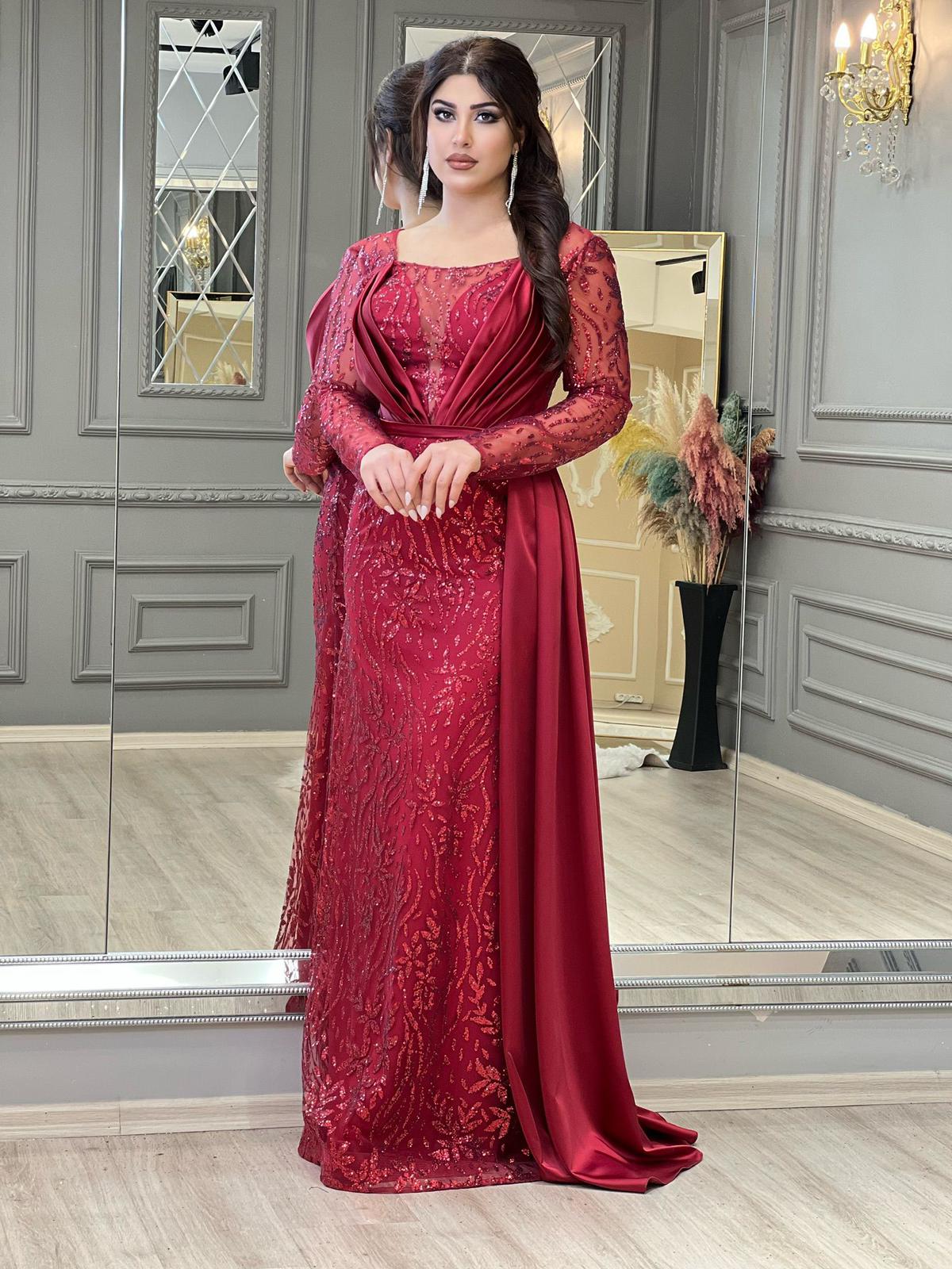 فستان طويل باكمام طويلة